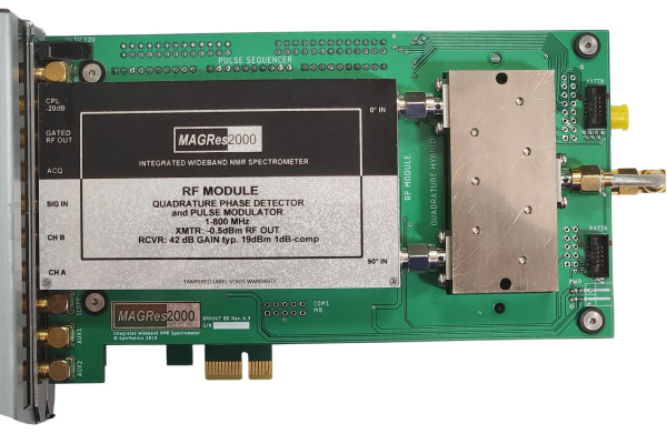 Its homodyne RF module delivers noise-tolerant operation with no blind spots across the 3–800 MHz band, ideal for performing wide frequency sweeps. The built-in DDS-based frequency synthesizer provides jitter-free output up to 1 GHz with precise frequency, amplitude and phase control for advanced pulse techniques.